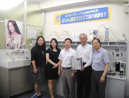 2012年5月27日,康亦健集團董事長潘峰博士攜公司技術骨干一行數(shù)十人前往日本,進行了為期一個星期的考察和交流??狄嘟∵M一步加強了與日本功能水協(xié)會、日本松下集團的合作,進一步學習和吸引了當今功能水機最先進的技術和方法。