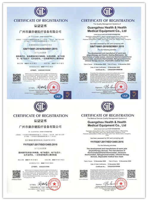 11月17日,康亦健順利通過ISO 9001質量管理體系、ISO 13485醫(yī)療器械質量管理體系認證要求,并獲得新認證證書!