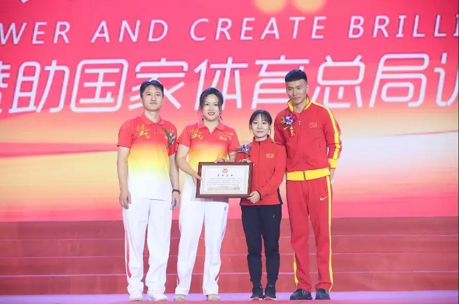 【呂鐵杭副局長向康亦健集團(tuán)董事長潘峰博士頒發(fā)”體育·訓(xùn)練局贊助商”榮譽(yù)證書】