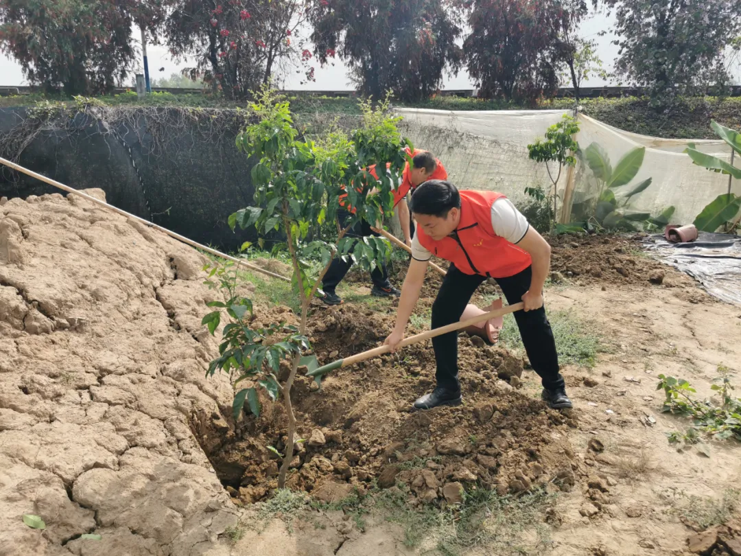 欖核鎮(zhèn)三級調研員符立新、康亦健集團常務副總經理趙總、康亦健集團執(zhí)行董事余總、雁沙村黨總支部書記周艷梅、欖核鎮(zhèn)黨建和組織人事辦公室黨支部黨員、康亦健集團黨支部代表以及雁沙村黨總支部黨員共同參與了植樹行動。大家揮汗如雨,干勁十足,現場一片熱火朝天的景象。這不僅彰顯了攜手并進、共創(chuàng)綠色家園的決心,也加深了政企之間的合作與友誼。