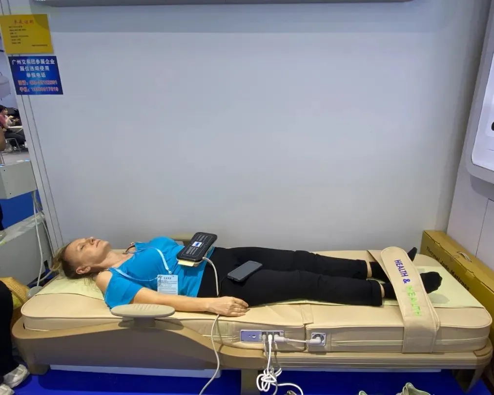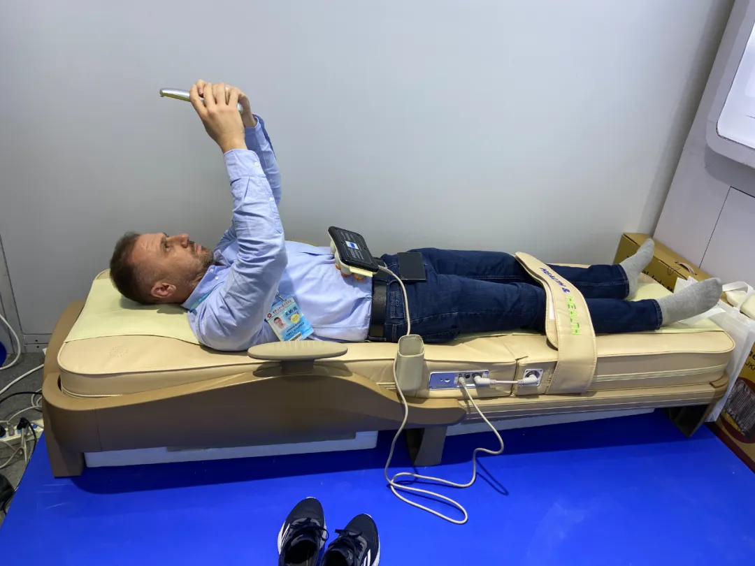 一位德國采購商在體驗(yàn)溫?zé)崂懑焹x后,感嘆道:“哇!后背像卸了十斤沙袋,渾身都舒展開了!中國中醫(yī)+智能科技,這個(gè)組合太神奇了!”