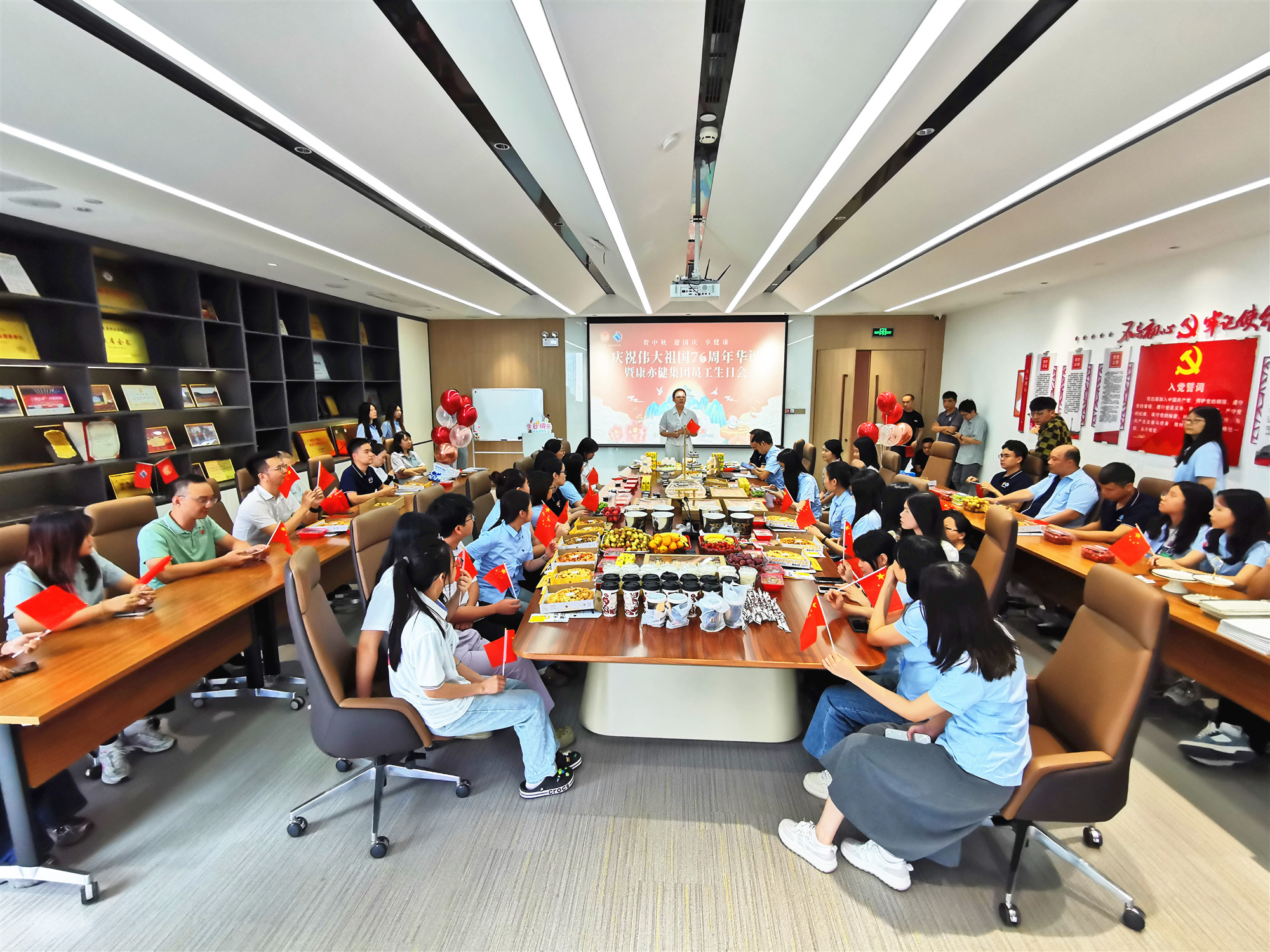活動現(xiàn)場,一張張燦爛的笑臉與五星紅旗交相輝映,一場莊嚴(yán)的升旗儀式拉開了生日會的序幕。全體員工肅立注目,齊唱《我和我的祖國》,激昂的旋律中,每個人的眼中都閃爍著自豪與使命。